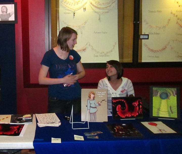 I started thinking about selling my art. There was a high school event where students could set up and sell their art to parents and teachers, and that was my first experience being a vendor. Photo from that event below.